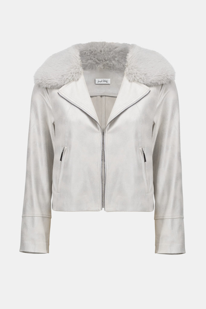 Steal the show with this spotlight-worthy jacket, crafted from soft foiled suede and accented with a notched collar and a removable faux fur trim for added versatility. Stylish zip pockets and a center-front hook-and-eye closure combine practicality with flair. With a sophisticated swing silhouette and just the right amount of edge, this jacket easily checks all the style boxes.