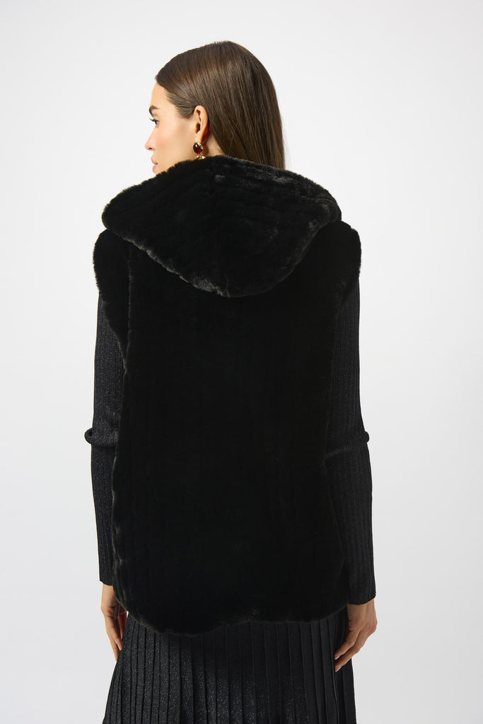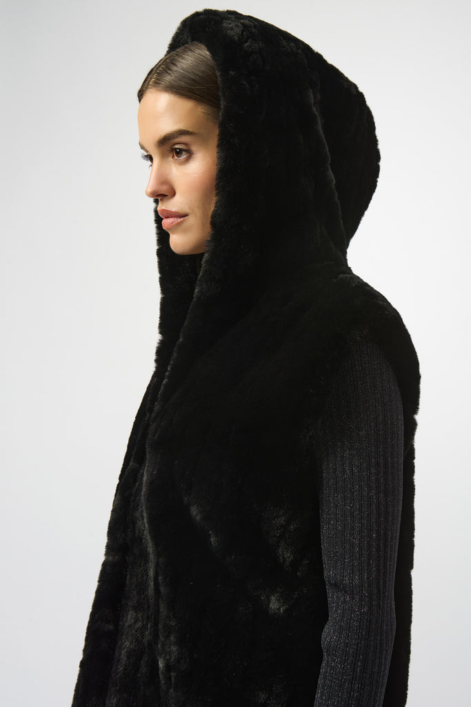 Wrap yourself in the plush luxury of our faux fur sleeveless vest. Featuring a chic hooded collar and a discreet hook-and-eye closure, this stylish piece is elevated by a textured stripe pattern that exudes haute-couture elegance. Fully lined for unparalleled comfort, it’s a wardrobe essential you’ll never want to take off.