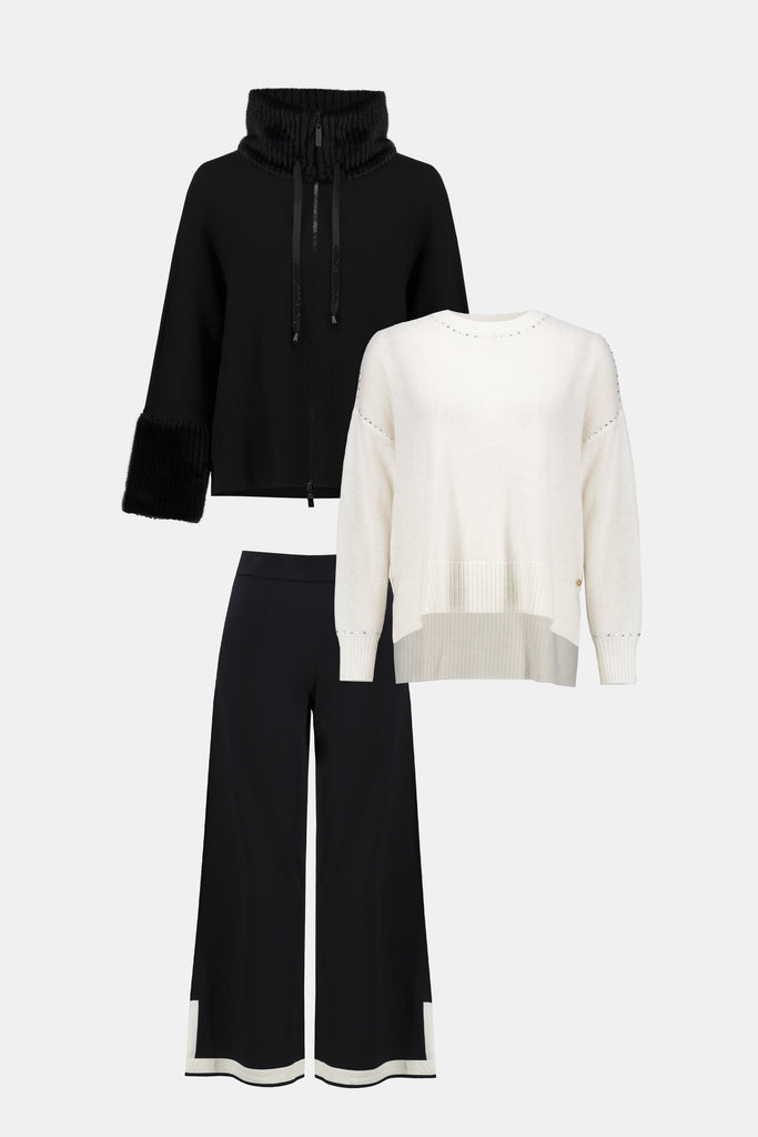 Featuring a refreshing colour-block design and effortless pull-on styling, these sweater knit culotte pants make dressing easy breezy. The soft sweater knit fabric pairs perfectly with the culotte silhouette, offering graceful movement and a flattering drape. Side slits at the hem add a stylish touch, highlighting the subtle colour-block pattern for a look that's both chic and comfortable.
