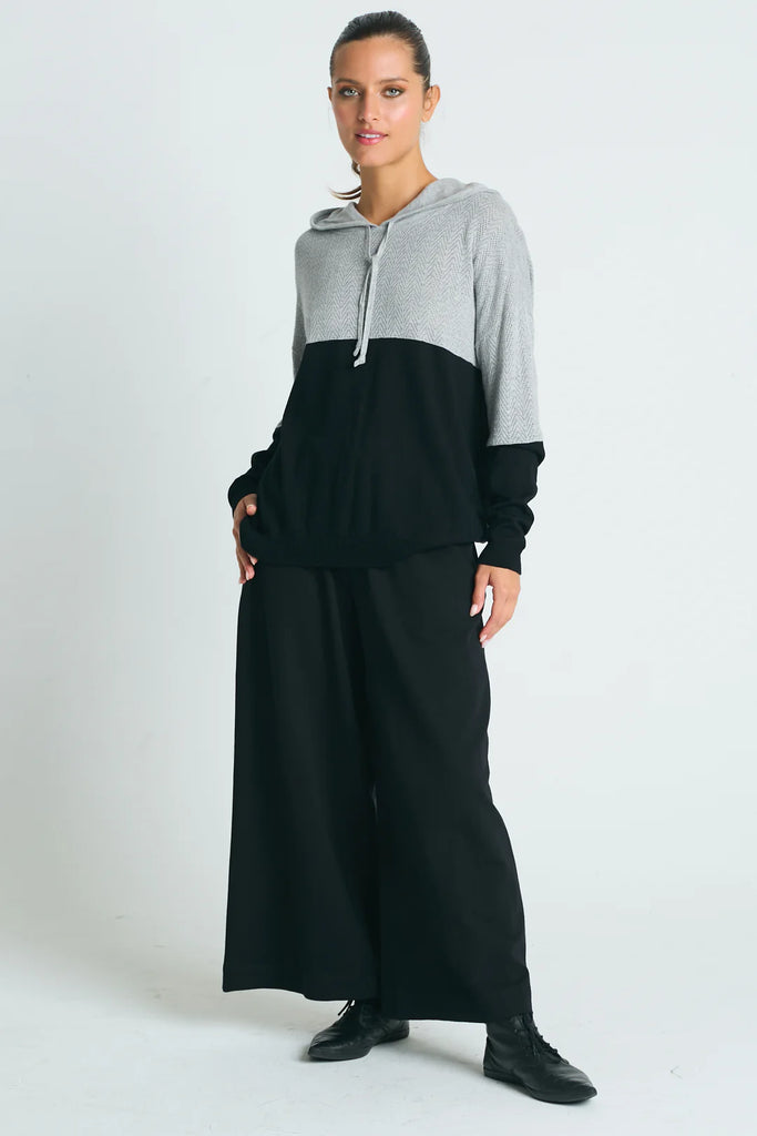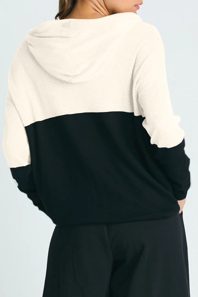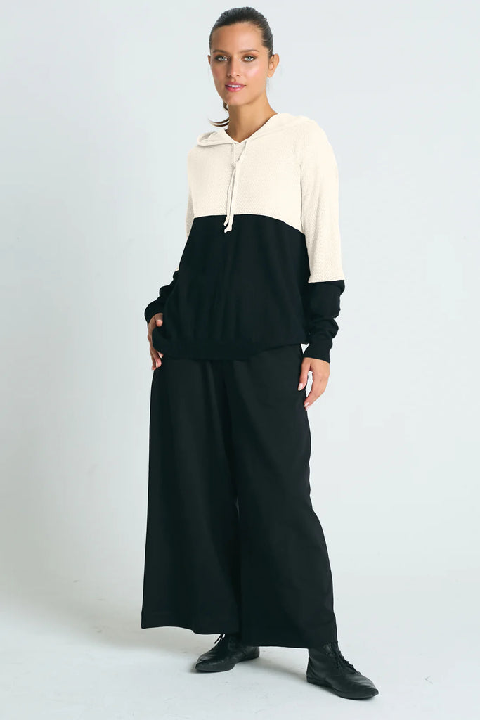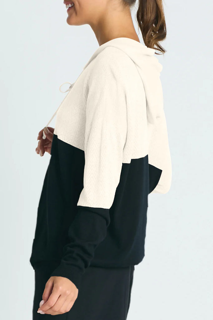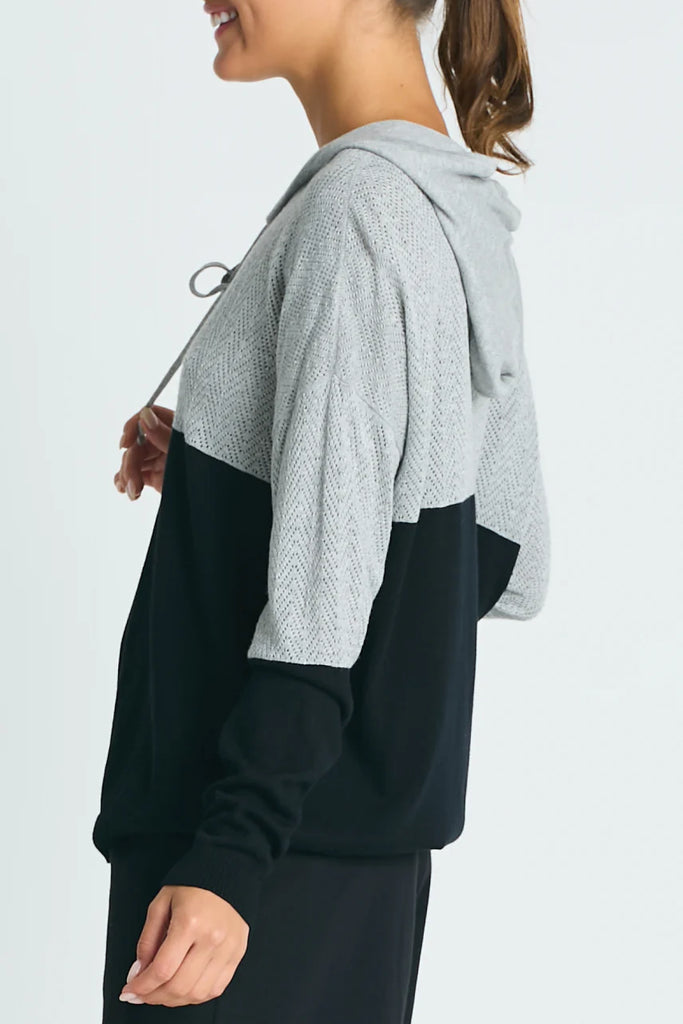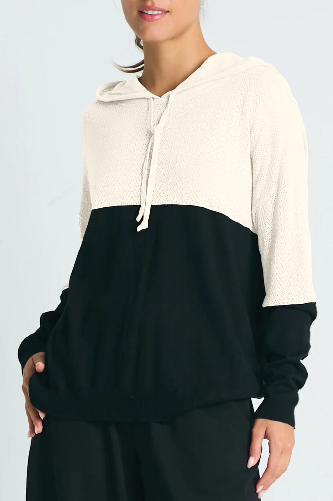 Laid-back luxury meets tonal contrast in this soft, sculpted hoodie. Crafted from a breathable Pima cotton and modal blend, it features a subtle pointelle knit on top and smooth jersey below—delivering texture, dimension, and all-day comfort. The relaxed silhouette, drop shoulders, and lightweight hood offer an easy drape with elevated appeal. It’s the kind of piece you’ll lounge in, live in, and love wearing out.
